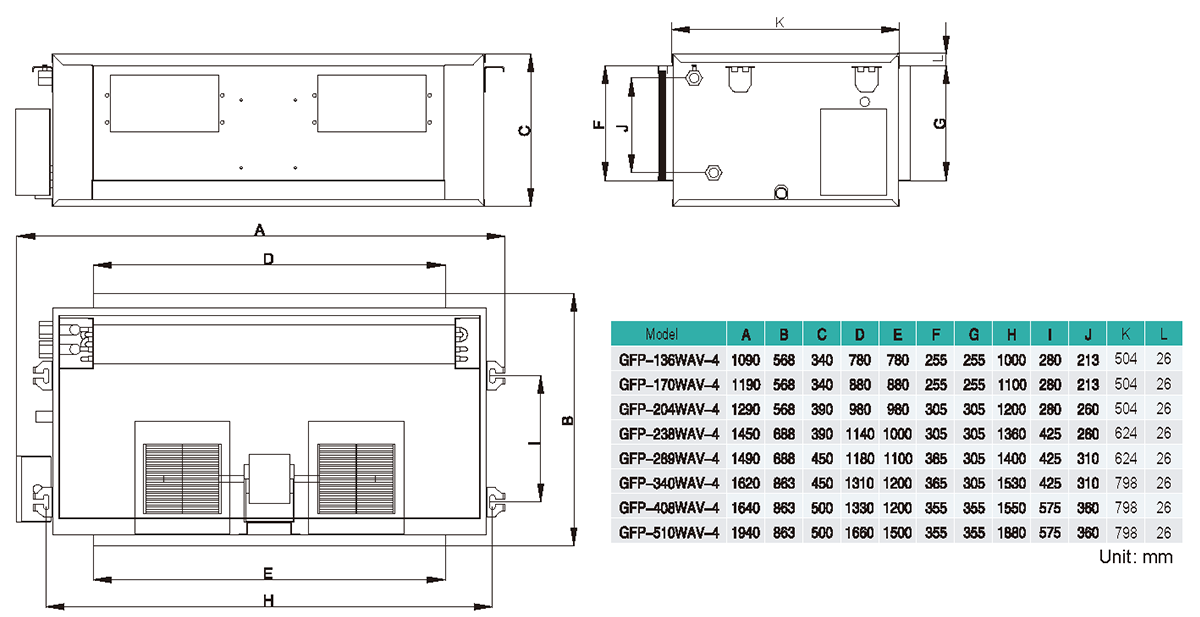 L: Left pipe connection(facing the air outlet)